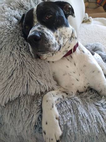 A friend wondered if the cosmos had sent him to us. I did not like hearing this. I did not want to feel obligated and didn’t want to have to be the one to send him onward to a questionable future. Our neighbors have helped. They come by to take him on walks. Others have taken him to the vet and to the rescue service for evaluation. We’ve had people stop us on our walks and ask if this is the dog they saw on Facebook. They offer to share contacts in case they can help. This dog is goodness wrapped in a black and white coat. We’ve had him a month now and his name is Cosmo. He’s not going anywhere if it isn’t our couch tonight and many, many future nights. We are right now headed out the door, so our dog Cosmo can have his second walk of the day.
